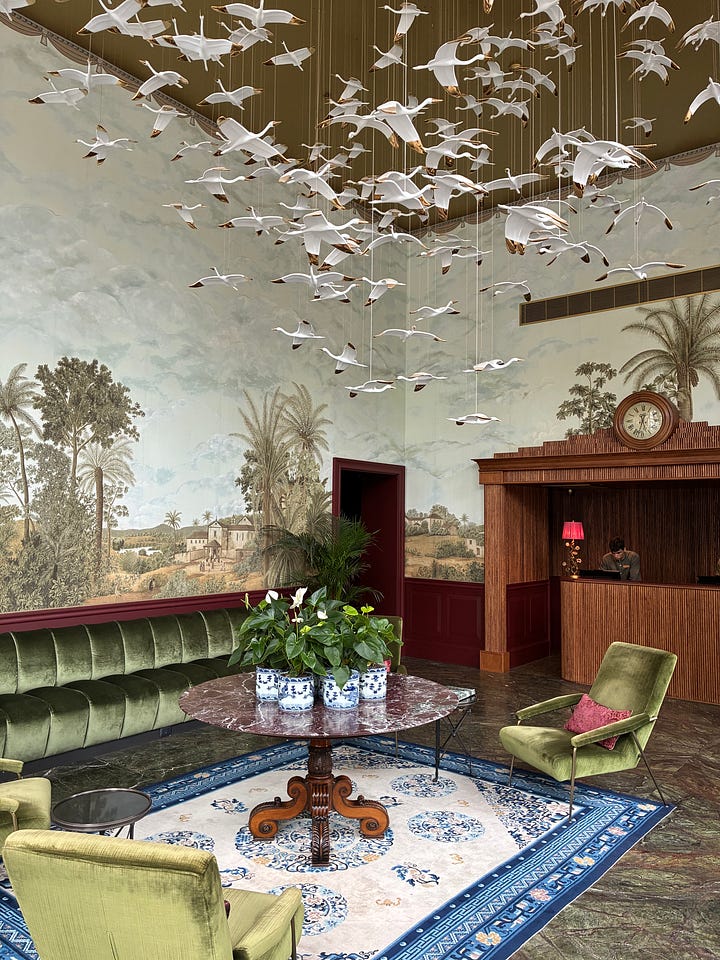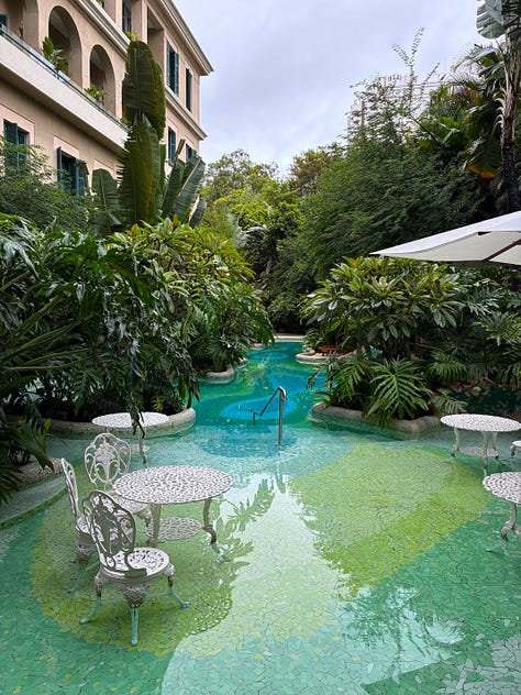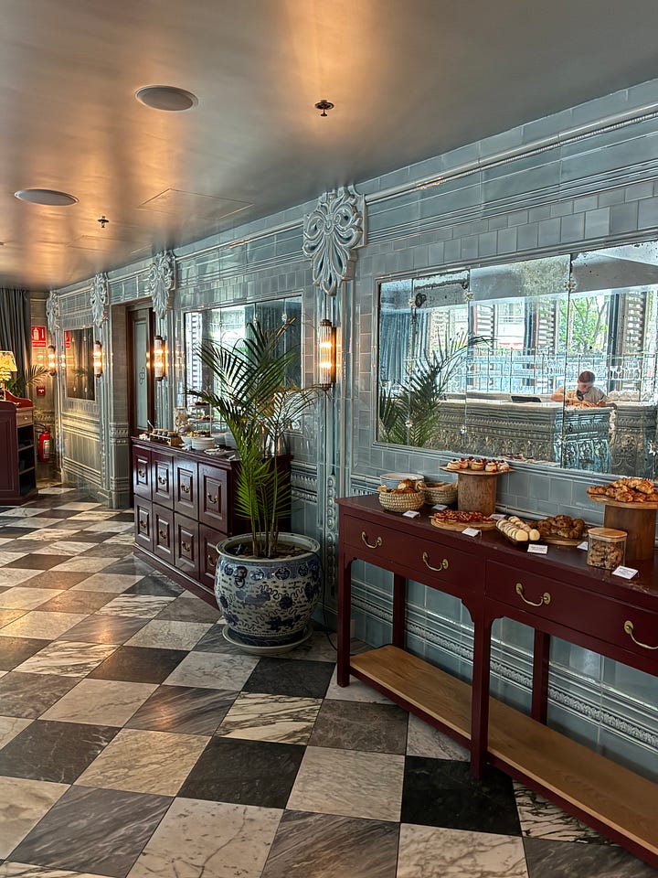 Hotel Montevideo (Montevideo)- A stunning selection in the heart of Montevideo for maximalist interior lovers! Velvets, horses, and blue and white china and palettes that celebrate the Uruguayan flag decorate the lobby and restaurants at the hotel. We also loved our room with a balcony overlooking the urban clay tennis courts and the best water pressure I’ve ever had in a hot shower after a long travel day. Breakfast had strong coffee (randomly hard to find on this entire trip) and golden, locally sourced eggs made to order. Could not recommend more for a night or two in Montevideo.