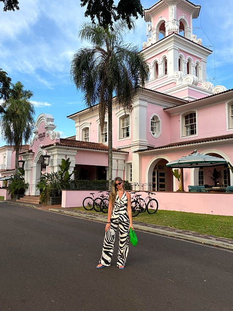 The hotel itself is a damn spectacle. The walls are washed pink, the chairs are upholstered in leopard print, and every plate, vase, painting, or tile has a parrot or a toucan in different art forms. Breakfast is a sprawling buffet with enough fresh and local fruit to actually turn you into a parrot, and the pool, stocked with Möet based cocktails, welcomes you with a spritz or complementary acai smoothie after a day of exploring nature in the park.
