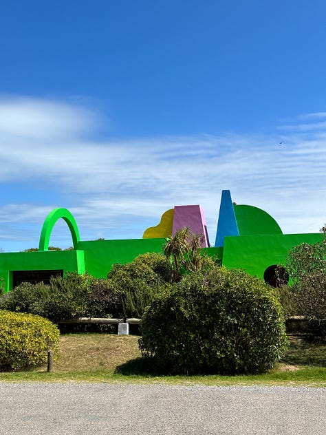 We took a pit stop at the iconic Casapueblo in Punta Del Este, about an hour from our hotel constructed by the Uruguayan artist Carlos Páez Vilaró. I had seen Vilaró’s art before, not even realizing it was him, and knew I needed to buy some and tour his home. Rainbow abstract paintings cover the white plaster walls inside and out, while large ceramics with funky, abstract faces stare up at you pull out your phone to take their photos. It felt like a home fit for a mermaid, and cats are running around the inside just as they would if he still lived there. I was in heaven. We walked away with some new canvas art and randomly the best museum jamón and cheese sandwich one could have?