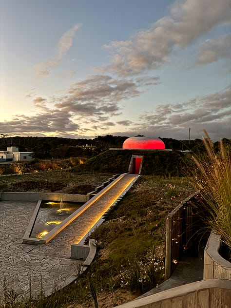 Peak moments were all about sipping a white negroni at sunset by the emerald marble pool overlooking the crashing waves of Uruguay’s beaches, savoring every detail from the warm chocolate chip cookie we were greeted with, to the private tour of James Turell’s Skyspace that is on the property for stargazing.