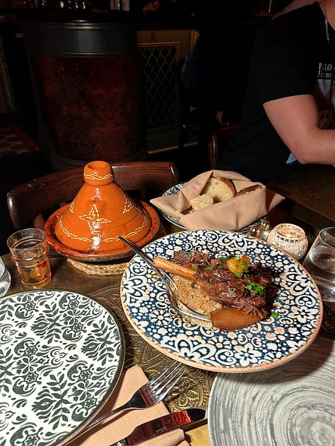 Order a tagine and the lamb shank and finish with the pistachio creme brulee that is the most acceptable form of “““““the Dubai chocolate bar”””””” out there on the market right now.