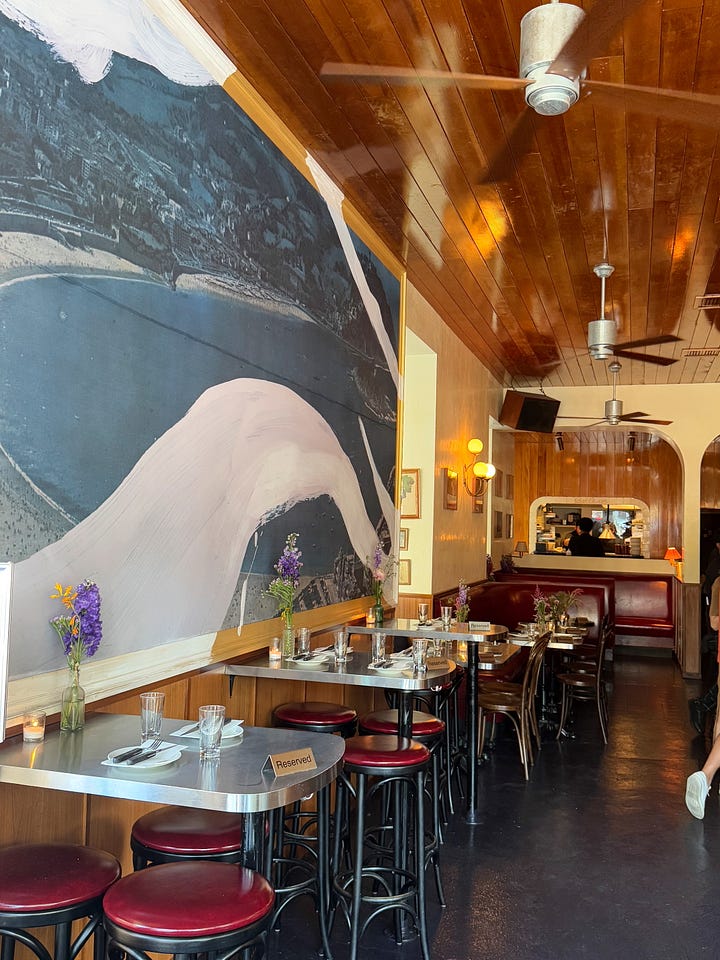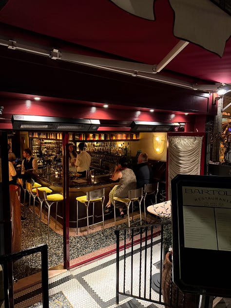 My favorite opening of the year, and one that I wish I experienced in October instead of August. Outside of the red, patent leather seats and early 2000s fragmented tiling, I knew as soon as we sat down with our silver tray of vermouth-y martinis and felt the West 4th breeze coming in from the fully open windows that that this would be a peak experience in the comfortably chilly months of fall. Your nicest sweater keeping you snug with warmth trickling down your arms and legs from the strong cocktail you ordered.