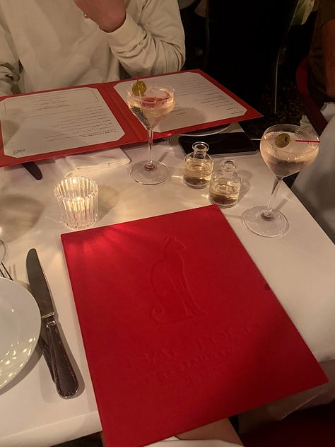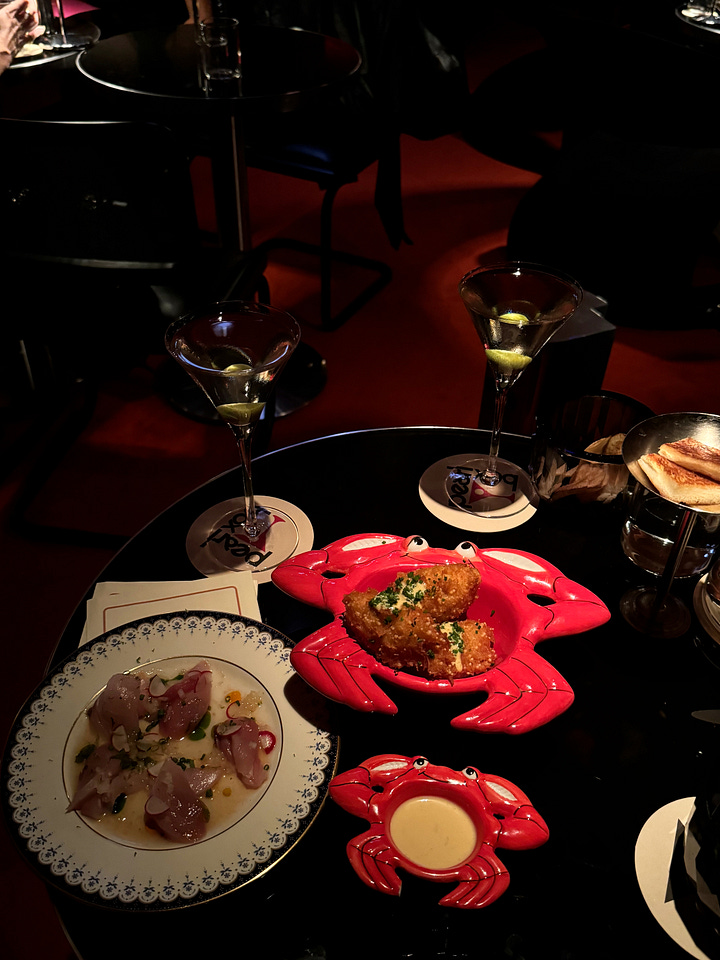 Now that you can comfortably get a reservation to Pearl Box, I encourage you to pair your favorite fall outfit with an evening here. The ambience is very…red candy apple with those shiny red couches…the kind that squeak when you sit down and then end up being comfortable. The perfect place that belongs in my perception of what having a martini in SoHo should feel like on an early 2000s Friday night in New York City.