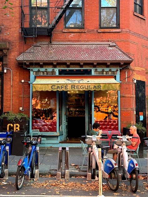 I can promise you that you will not have the best coffee of your life at Cafe Regular. The coffee is fine. You come to cafe regular for a corduroy covered day of creativity amongst murals and falling leaves if you decide to claim your seat out-front on their Parisian patio.