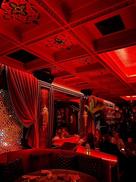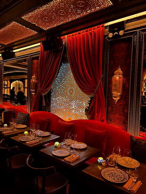 Ok I try to be mindful of too much ‘new opening’ rhetoric on here, but Ayah is the fire that will keep you warm for the fall and winter months. Unlike the predecessors in this article that champion red leather, Ayah champions red velvet. Every bit of the space has paneling, tables, lighting, wallpapers, and carpets galore sourced directly from Marrakech, which happens to be my most favorite place I’ve ever traveled.