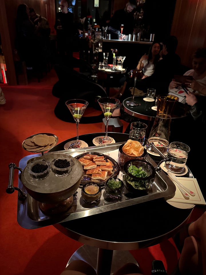 I can admittedly enjoy a bit of a see and be seen type of establishment from time to time, and it’s a fun place to see everyone huddling in, wearing their chicest jacket to enjoy the fiery, cosmopolitan indoors and reasonably priced caviar. (yes, I swear it’s real Caviar).
