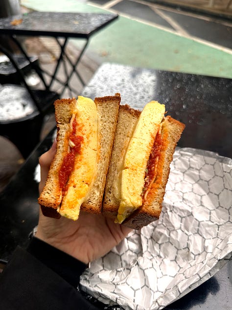 Rigor Hill Market- The perfect backdrop for a casual fall weekend breakfast on one of the quainter corners of the Tribeca modern landscape. The egg sandwich with tomato jam is one of a kind, and so is the turkey sandwich with pickled shallots.